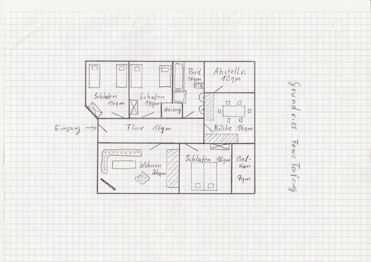 Neben den unten folgenden Räumlichkeiten gibt es zusätzlich noch einen Abstellraum neben der Küche, in der Sie sperrige Gegenstände abstellen können. Somit stehen Sie während Ihres Aufenthalts nicht im Weg und stören keinen. Zusätzlich stehen in diesem Raum auch eine Waschmaschine, eine Wäschespinne mit einem Bügelbrett und einem Bügeleisen, womit sie gerne Ihre Wäsche reinigen können.