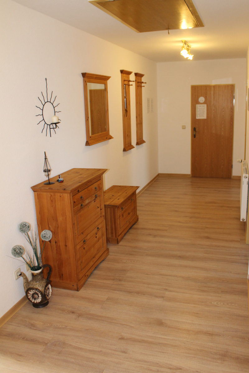 Die Einrichtung unserer Ferienwohnung ist großzügig gestaltet, um jeden Gast einen angenehmen Aufenthalt und Urlaub zu ermöglichen. In alle Räumlichkeiten gelangt man durch einen Flur durch die Eingangstür im 1. Stock. Hier haben für Sie einige Informationsbroschüren der umliegenden Attraktionen ausgelegt. Zusätzlich haben wir eine Ostfrieslandkarte und weitere Flyer ausgelegt.